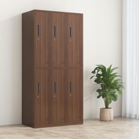 ตู้เก็บของโลหะ6ประตูตู้เก็บของพิมพ์ลายเนื้อไม้ตู้เหล็กตู้เสื้อผ้าของพนักงาน